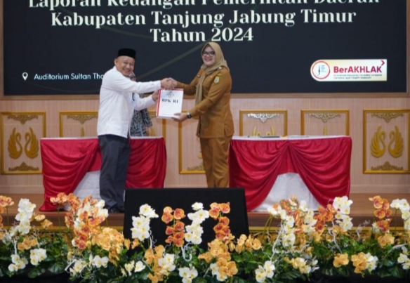 Lacakkjambi.com|Tanjab Timur- Untuk kedelapan kalinya BPK RI memberikan opini Wajar Tanpa Pengecualian (WTP) atas kinerja pengelolan keuangan Pemkab Tanjung Jabung Timur. Sebelumnya sejak 2017 WTP berturut – turut tanpa jeda diraih kabupaten itu.